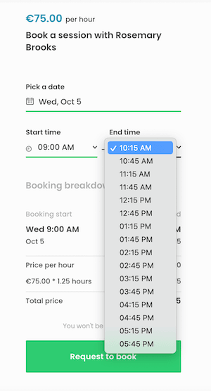 .toDate();For listings with an hourly price, the function calculateQuantityFromHours determines the correct quantity as a decimal of full hours. However, if you want to set a price per minute, or e.g. a price per non-hour session, you will need to modify calculateQuantityFromHours as well.